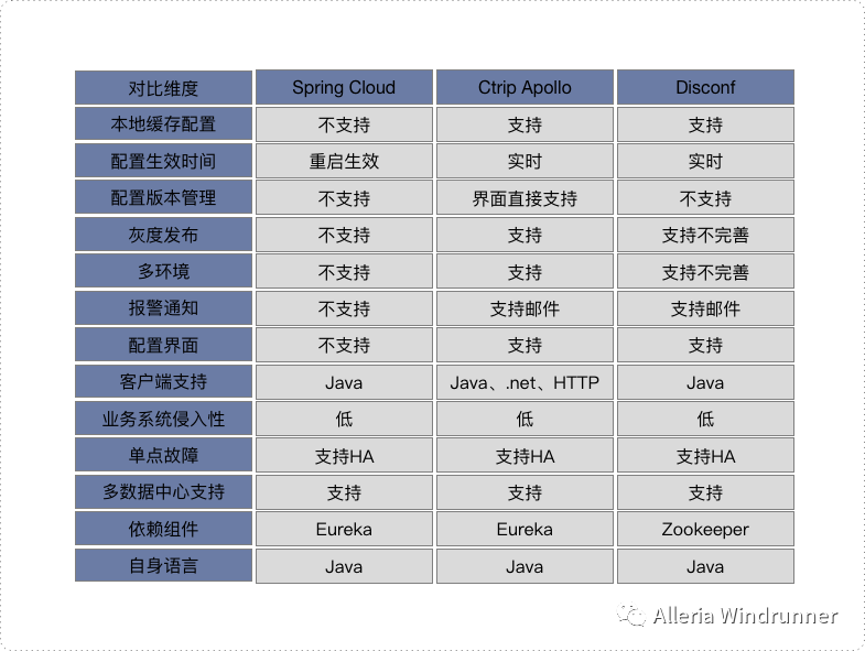 经过对比可以发现Spring Cloud现在功能海很弱,而百度的Disconf依赖的组件是zookeeper,而其实配置中心要求的是AP模型。携程的Apollo是AP模型,并且功能也比较强大,业界内配置中心的开源选择基本上也是Apollo。