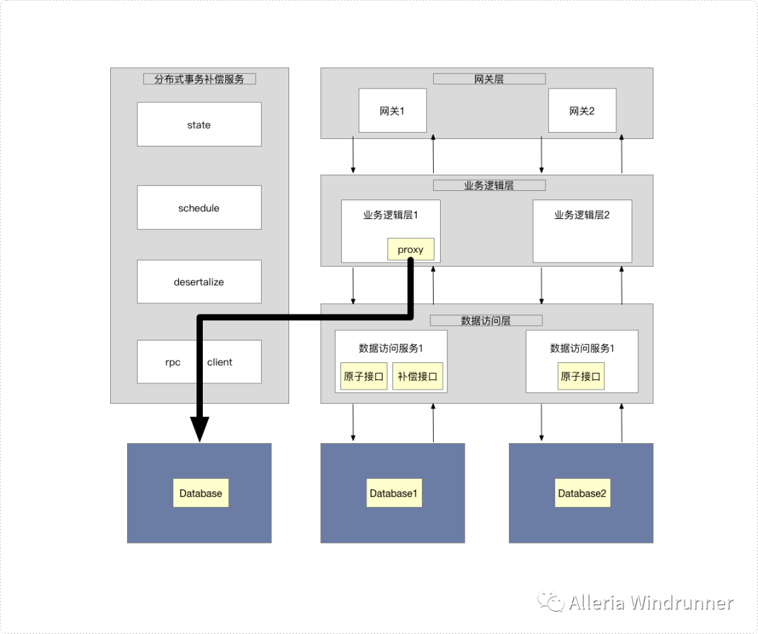 业务逻辑层的proxy是最开端也是最重要的一环,因为我们要在这里把分布式事务的步骤和参数都持久化下来。具体的步骤如下: