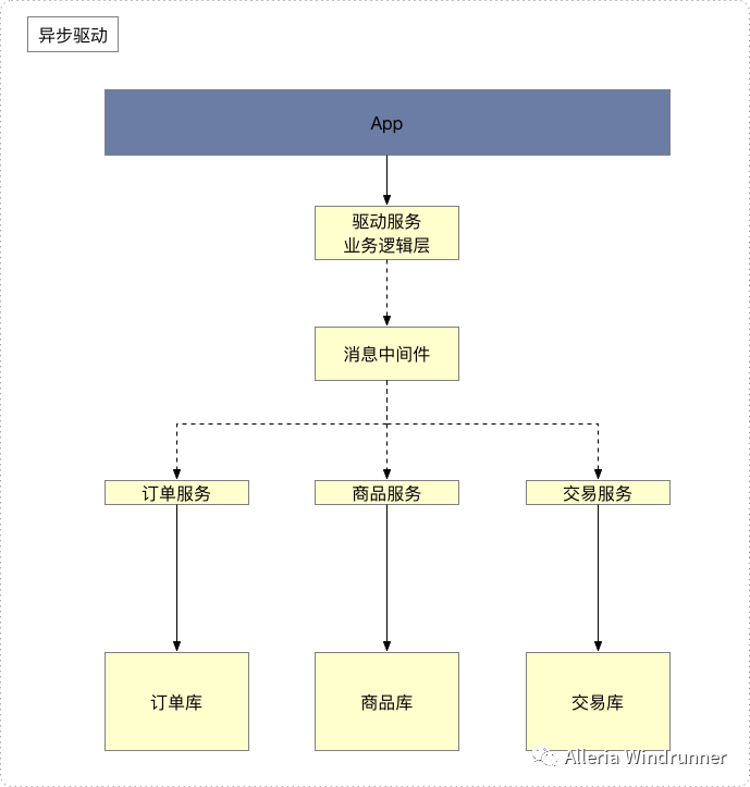 同步指我们的一次业务流程(请求)如果要操作用户服务、商品服务、交易服务一般我们是通过另外主调服务的业务逻辑层来驱动的。异步指我们的一次业务流程(请求)如果要操作用户服务、商品服务、交易服务我们一般是通过消息中间件来驱动的。两种方式的示意图如下: