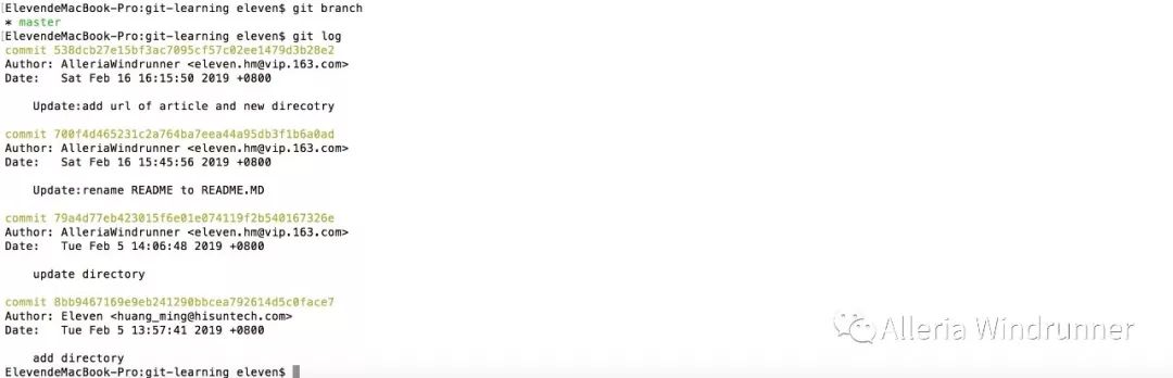当我们需要查看历史提交记录的时候就可以使用git log,那先一起看一下示例工程的历史提交记录: