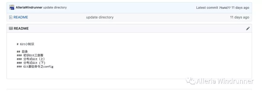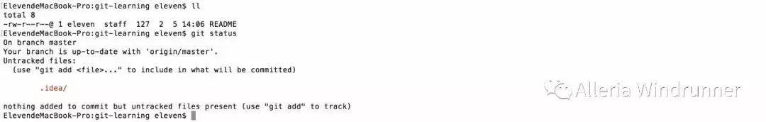介绍完概念和理论,我们接下来就在咱们的示例工程中去实践一下。工程的GitHub地址为https://github.com/AlleriaWindrunner/git-learning.git。上篇我给示例工程添加了目录: