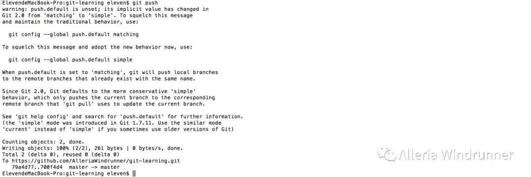 最后我们执行git push把本地修改推送到远程仓库看一下效果: