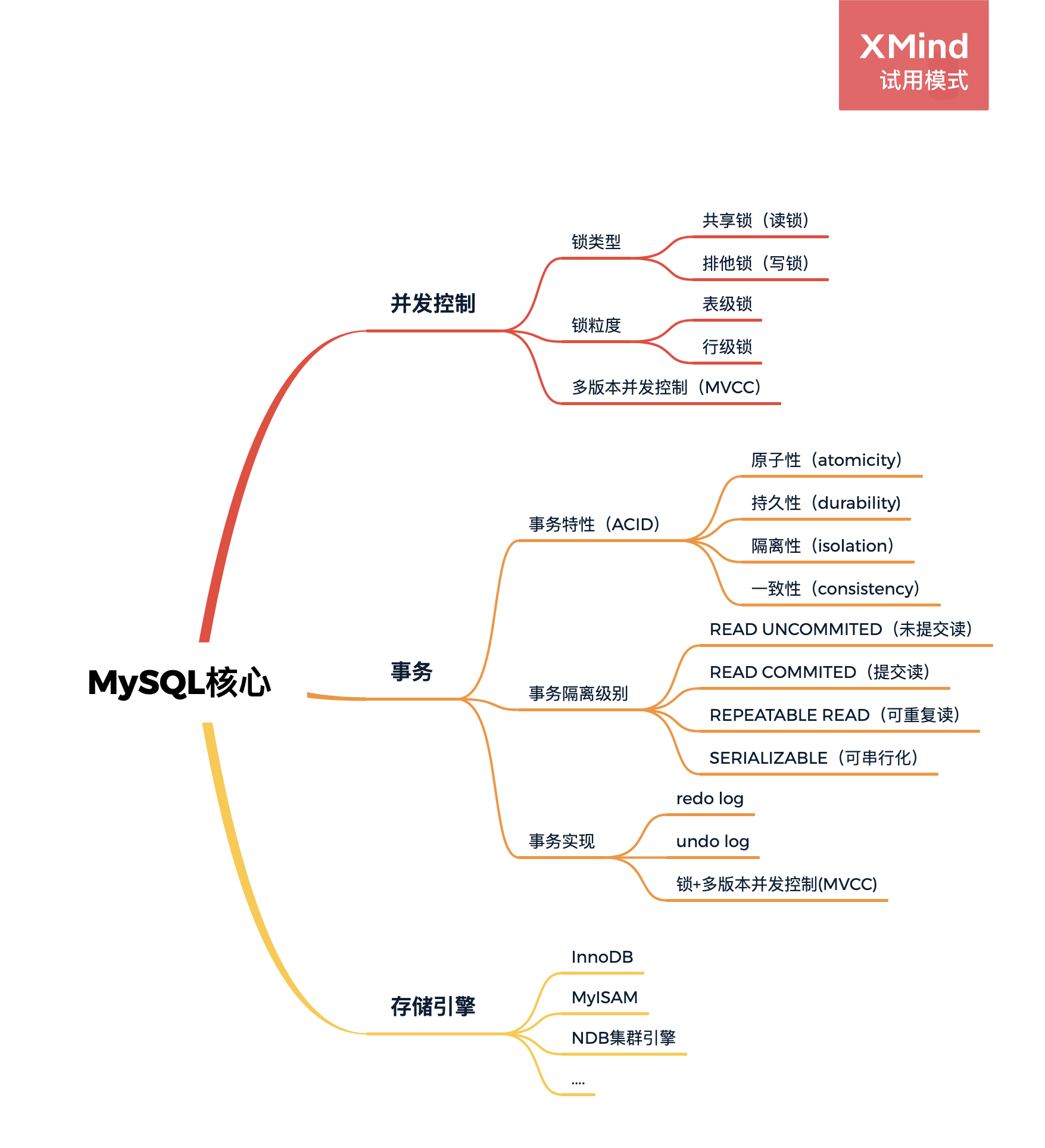 今天的内容就和大家聊一聊MySQL数据库中关于并发控制、事务以及存储引擎这几个最核心的问题。本内容涉及的知识图谱如下图所示: