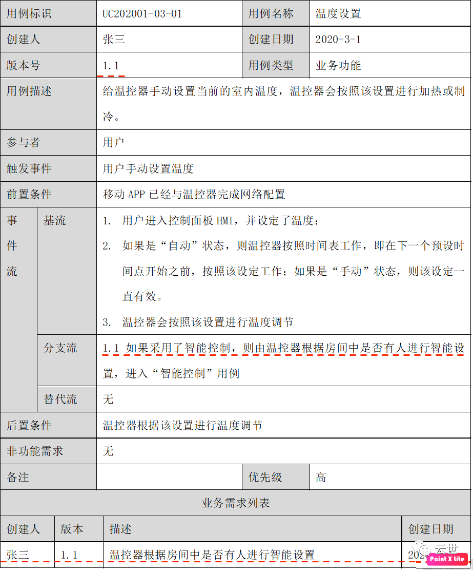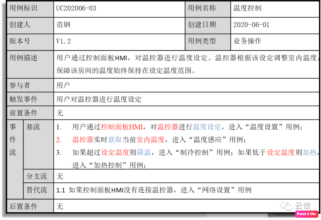 然后,在此基础上,为每个用例编写用例描述,如下图温度控制的用例: