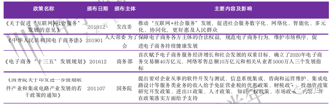 • 2020年7月,发改委等部门发布《关于支持新业务新模式健康发展激活消费市场带动扩大就业的意见》, 鼓励发展新个体经济,支持微商电商、网络直播等微经济形式。对下游行业的利好政策的持续发布带动电商SaaS行业的发展。
