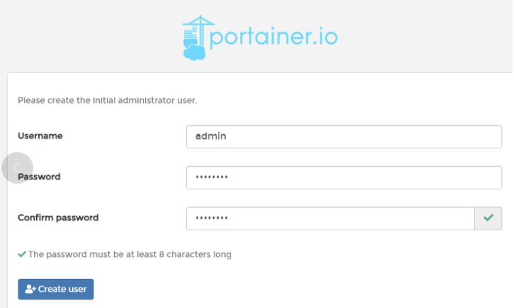 第一次访问需要配置admin用户的密码(不低于8位)