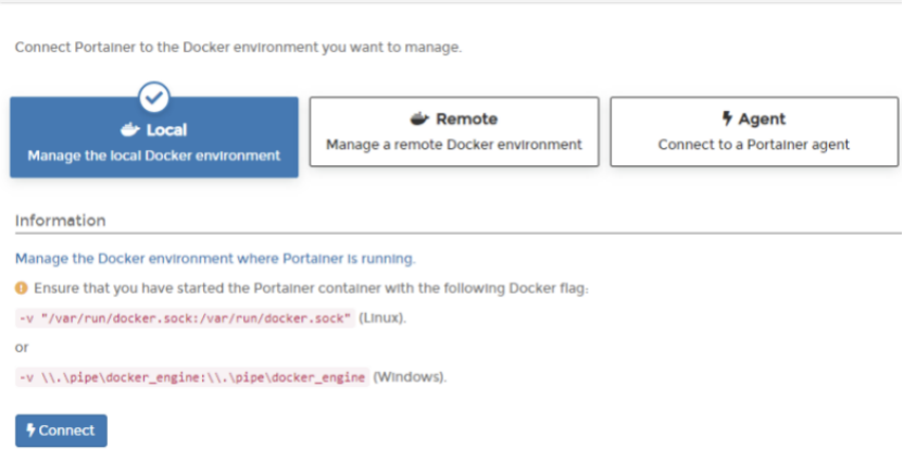 连接要管理的docker环境(本机docker环境)