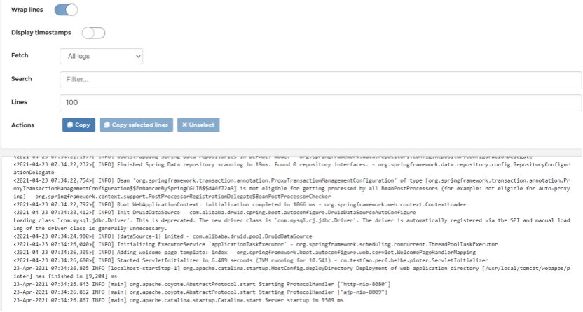 点击容器旁边的日志按钮,可以查看到容器的运行日志