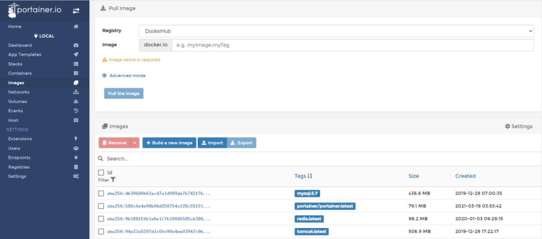 镜像管理页面,可以对镜像进行管理