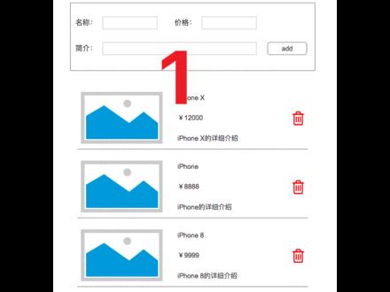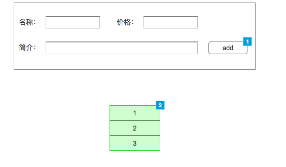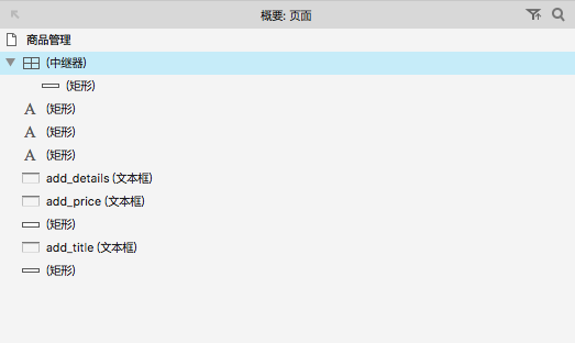 新建页面,命名为商品管理,拖动如下元件(一个矩形底层,三个文字标签,三个文本框,一个按钮,一个中继器)至页面上,排版。给三个文本框分别命名为add_title,add_price,add_details。