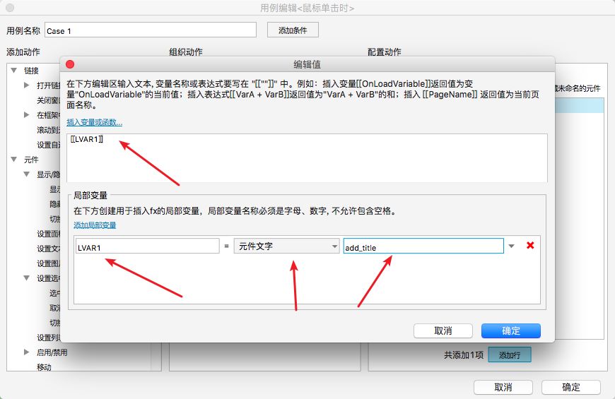 切换到商品管理页面,选择按钮,鼠标按下效果的填充颜色修改为蓝色。双击鼠标点击时,勾选中继器,点击添加行,点击title的fx,点击下方添加局部变量,做如下图设置。然后对price和details的fx做类似设置。此时预览页面,可以看到已