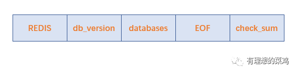 从上图可以看出,Redis 的 RDB 文件结构可以分为如下五个部分: