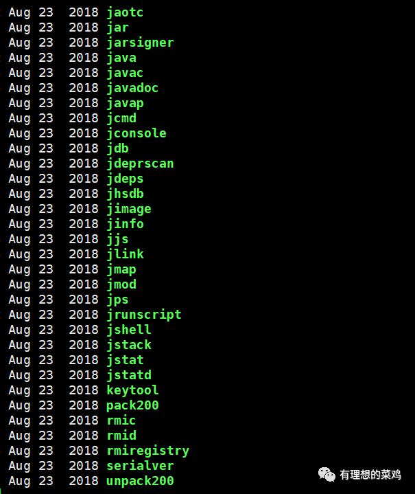 不同版本的JDK自带的工具会有细微的差别,我们以JDK11为例,来看一下其自带的工具列表: