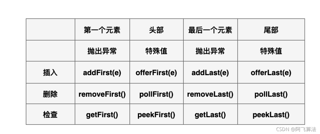 此接口定义在双端队列两端访问元素的方法。提供插入、移除和检查元素的方法。每种方法都存在两种形式:一种形式在操作失败时抛出异常,另一种形式返回一个特殊值(null 或 false,具体取决于操作)。插入操作的后一种形式是专为使用有容量限制的 Deque 实现设计的;在大多数实现中,插入操作不能失败。