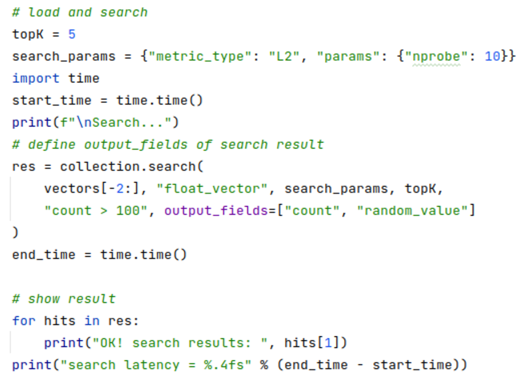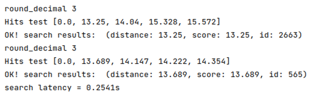 round_decimal = param_copy("round_decimal", 3)if not isinstance(round_decimal, (int, str))raise ParamError("round_decimal must be int or str")try:round_decimal = int(round_decimal)except Exception:raise ParamError("round_decimal is not illegal")if round_decimal < 0 or round_decimal > 6:raise ParamError("round_decimal must be greater than zero and less than seven")if not instance(params, dict):raise ParamError("Search params must be a dict")search_params = {"anns_field": anns_field, "topk": limit, "metric_type": metric_type, "params": params, "round_decimal": round_decimal}