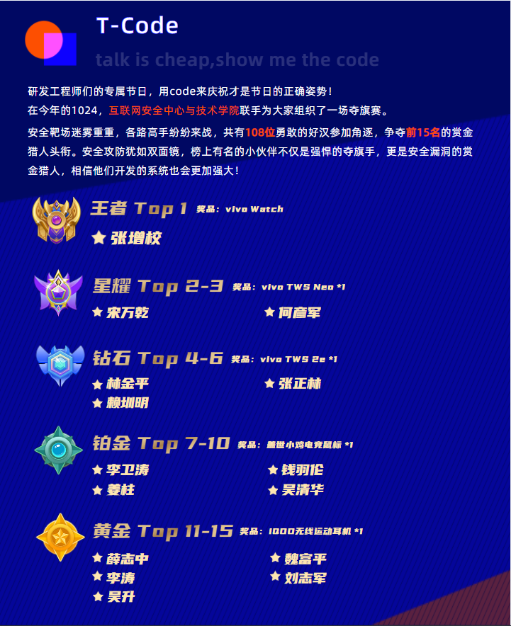 再一次祝互联网研发工程师们节日快乐,每一行代码都为vivo互联网业务敲下了最坚实有力的基础!感谢大家的参与,我们明年继续约!