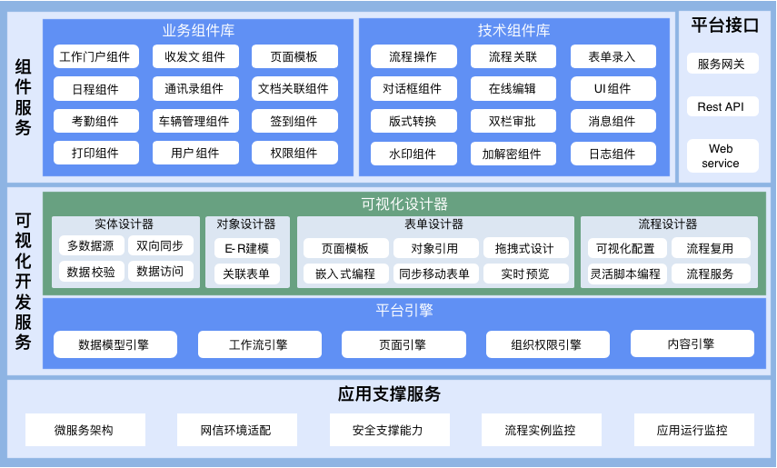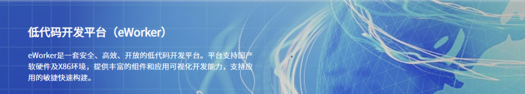 低代码开发平台(eWorker)支持X86环境和国产软硬件环境,采用微服务、前后端分离、云原生等先进技术,是安全、高效、开放的低代码开发平台。平台提供可视化开发环境,支持应用敏捷构建、运行资源按需调整,实现“平台+应用”的敏捷交付模式,支撑信息系统的敏捷建设和优化整合,消除信息孤岛、提升用户体验。
