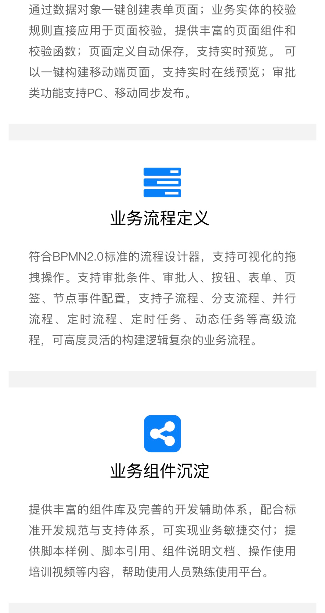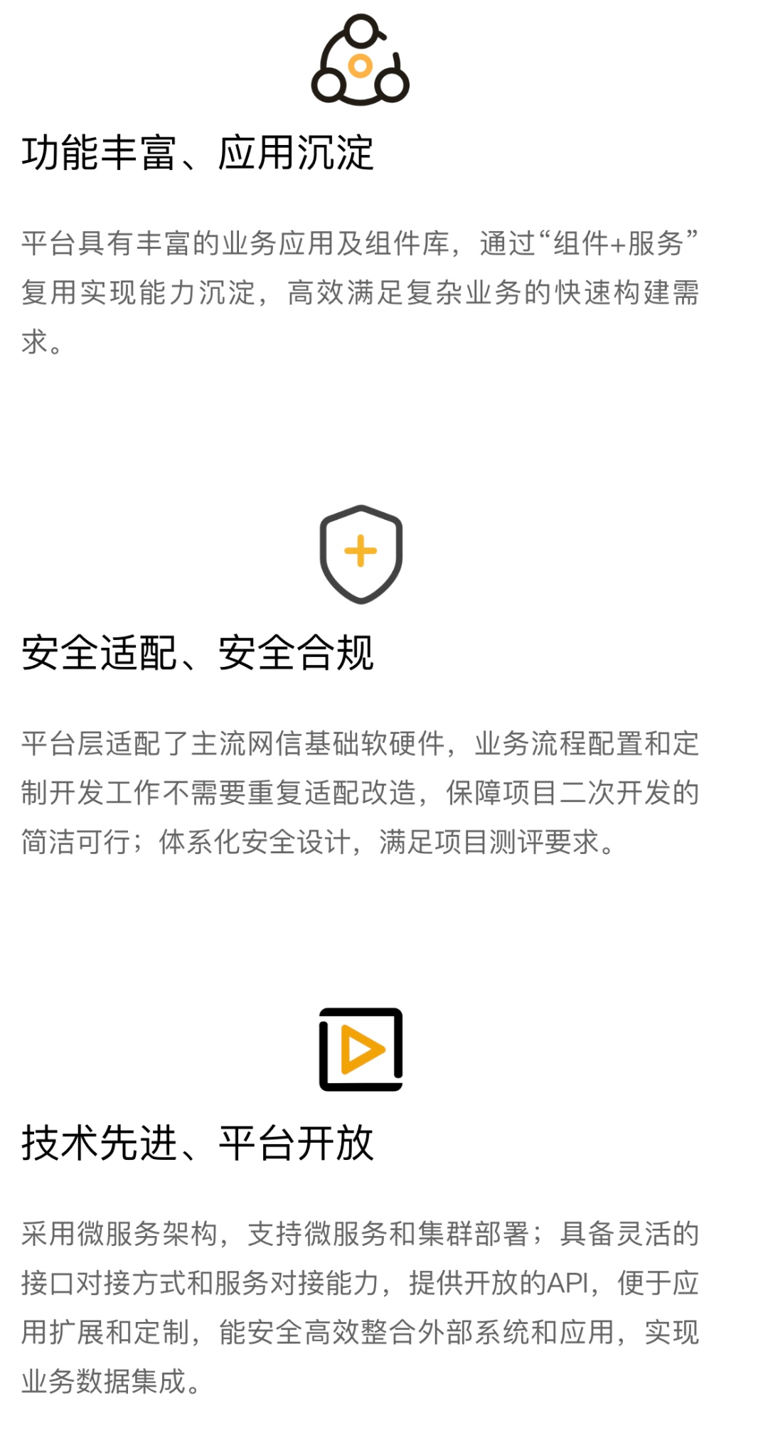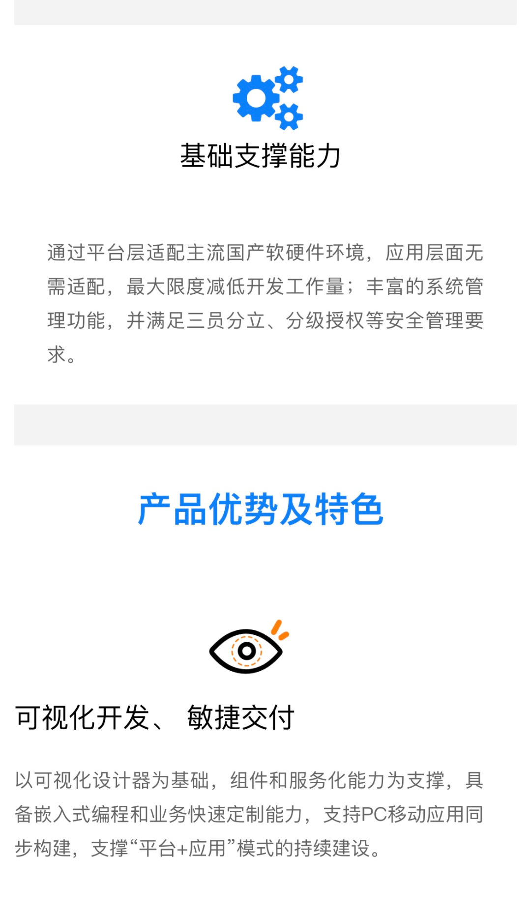 平台可以广泛应用于各级党政机关、企事业单位的信息系统建设,作为开发平台和应用支撑环境,建成“平台+应用”的敏捷交付模式,支撑未来信息化增速发展趋势。