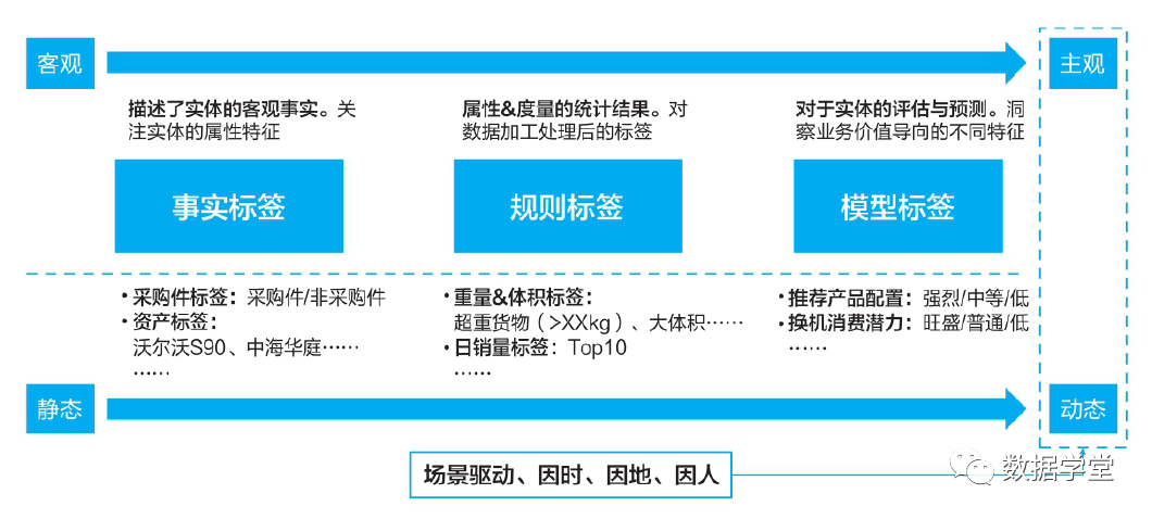 规则标签是对数据加工处理后的标签,是属性与度量结合的统计结果,如货物是否是超重货物,产品是否是热销产品等,标签是通过属性结合一些判断规则生成的,是相对客观和静态的。