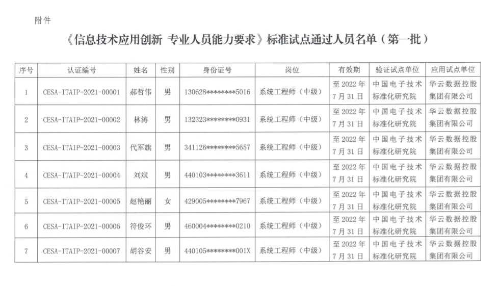 附件:关于第一批信息技术应用创新人才标准试点通过人员名单的公告