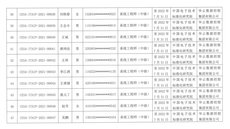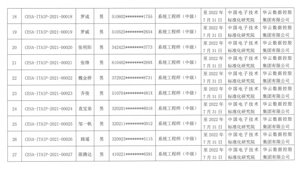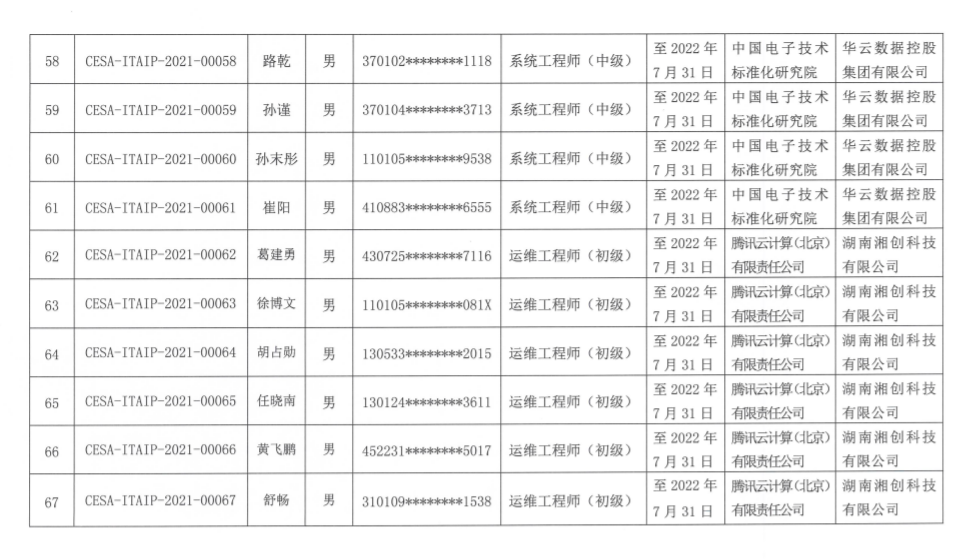 编者按:2021年10月31日,中国电子技术标准化研究院代表信息技术应用创新从业人员标准起草组(简称信创人员标准起草组)重磅发布了第一批信息技术应用创新人才标准试点通过人员名单。“第一批信息技术应用创新人才标准试点通过人员名单”电子版文件请点击下方“阅读原文”获取,提取码:1101。