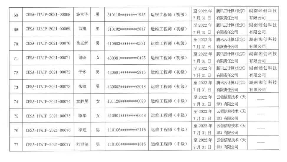 通过人员总共96人,其中系统工程师(中级)考核通过61人,由电子标准院和华云联合实施;运维工程师(初级)考核通过12人,由腾讯云和湖南湘创联合实施;运维工程师(中级)考核通过23人,由云领实施。这是信息技术应用创新人才标准试点工作的又一创新性成果。