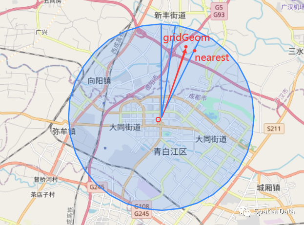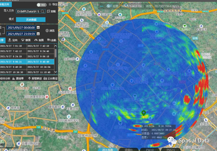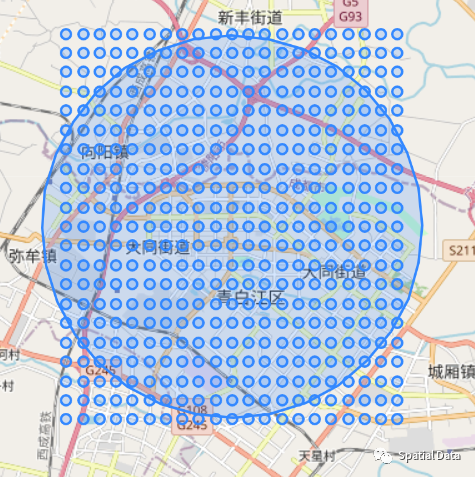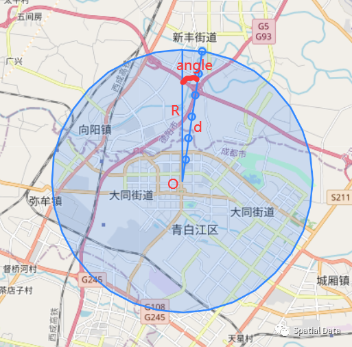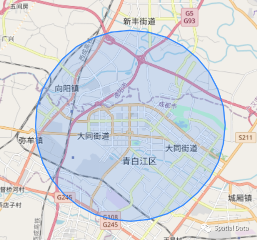 以雷达点为圆心,以4995米为半径,获取雷达圆形区域数据: