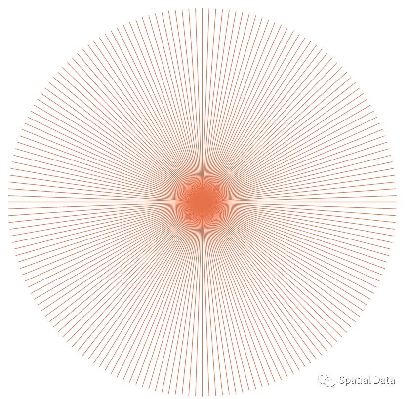 create table radar_line(gid serial primary key,angle int,geom geometry(LineString, 4326));do language plpgsql $$DECLARElon numeric;lat numeric;o geometry;_line geometry;_buffer geometry;_angle numeric;BEGIN --缓冲一个圆o := ST_GeomFromText('Point(104.255386 30.8904285)', 4326);for i in 1..180 loop_angle :=(i -1) * 2;--暂时以5公里为半径,之后裁剪下lon := 104.255386 + 5 111.0 * cos((90-_angle) 180.0 * pi());lat := 30.8904285 + 5 111.0 * sin((90-_angle) 180.0 * pi());_line := ST_MakeLine(o,ST_SetSrid(ST_MakePoint(lon, lat), 4326));insert into radar_line(angle, geom) values (_angle, _line);end loop;end;$$;--使用雷达圆形区域对射线简单裁剪下update radar_line t1 set geom =ST_Intersection(t1.geom,t2.geom)from radar_circle t2;