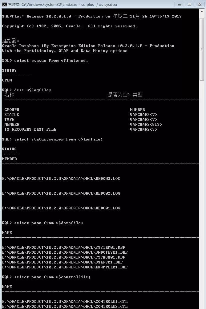 E:\ORACLE\PRODUCT\10.2.0\DB_1\FLASH_RECOVERY_AREA\ORCL\ARCHIVELOG\2019_11_26\O1_