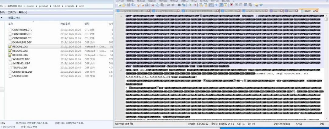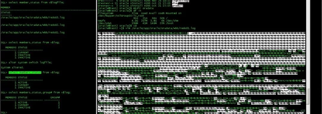 模拟redo文件损坏。使用vim编辑redo01文件---此时redo01文件为active状态。