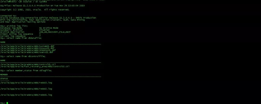 SQL*Plus: Release 11.2.0.4.0 Production on Tue Nov 26 13:03:54 2019