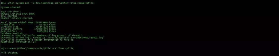 SQL> alter system set "_allow_resetlogs_corruption"=true scope=spfile;