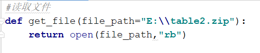 在debugtalk.py中定义一个函数get_file,读取上传的zip文件,然后在file的第二个参数${get_file()}调用它。