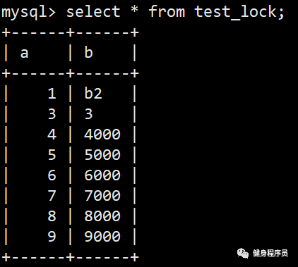 create table test_lock(a int(11),b varchar(16))engine=innodb;insert into test_lock values(1,'b2');insert into test_lock values(3,'3');insert into test_lock values(4,'4000');insert into test_lock values(5,'5000');insert into test_lock values(6,'6000');insert into test_lock values(7,'7000');insert into test_lock values(8,'8000');insert into test_lock values(9,'9000');create index idx_a on test_lock(a);create index idx_b on test_lock(b);