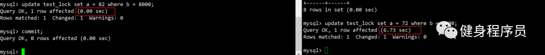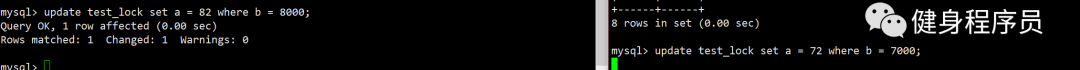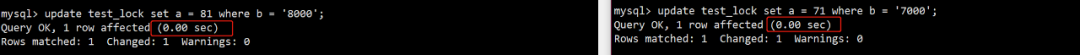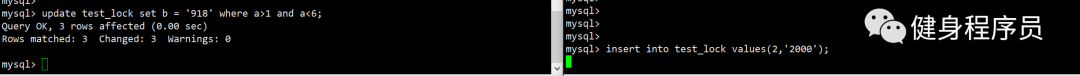 左边更新数据并没有a=2的行,但是右边发生了阻塞。