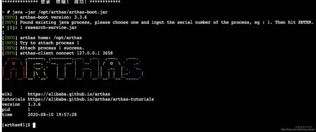 选择要诊断的java应用序号,回车即可attach上去进入Arthas控制台;