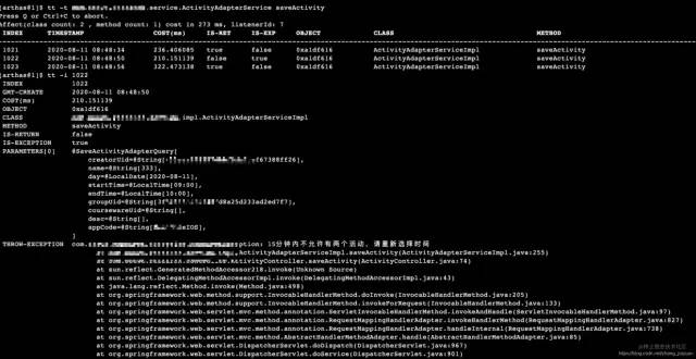 | tt | 方法执行数据的时空隧道,记录下指定方法每次调用的入参和返回信息,并能对这些不同的时间下调用进行观测 |