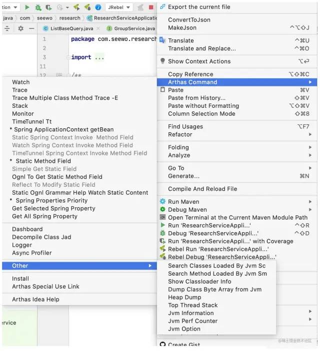 使用时在指定需要调试的地方右键,选择命令,一键copy,去Arthas控制台粘贴回车执行即可,真香。