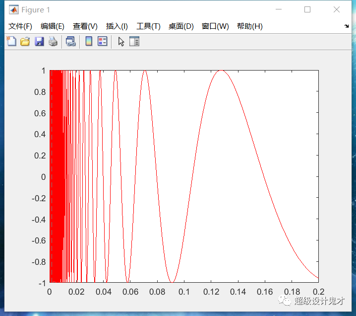 在这里我们使用了选项 'r' ,使得得到的曲线为红色;我们仅用一行命令就得到了以前不知道长什么样子的sin(1/x)的图像,matlab是不是很神奇呢?