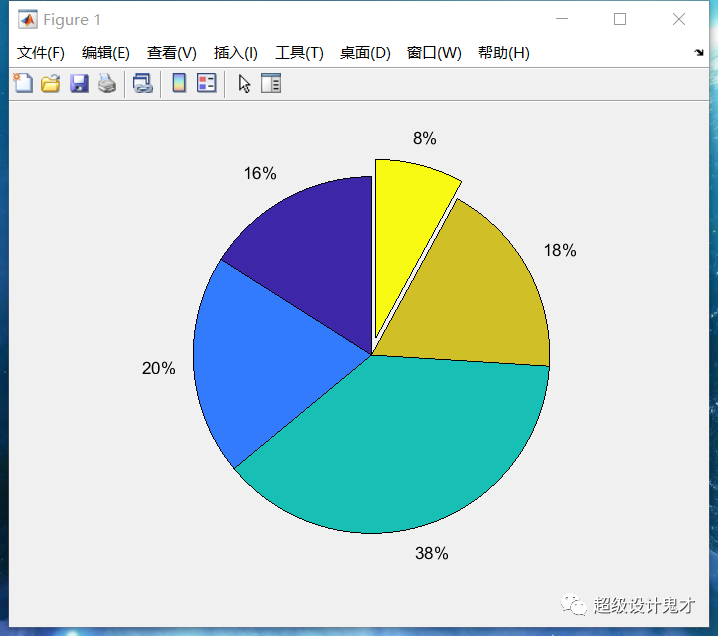 pie函数,格式为:pie(x,explode),x表示待统计数据,explode控制图块的显示模式。