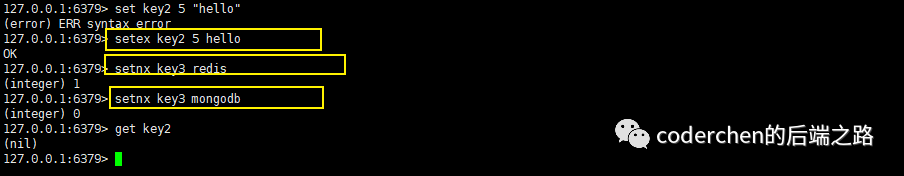 但区别是setex 命令是一个原子操作,在同一时间内完成设置值和设置过期时间这两个操作。setnx key3 "redis"