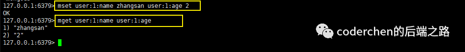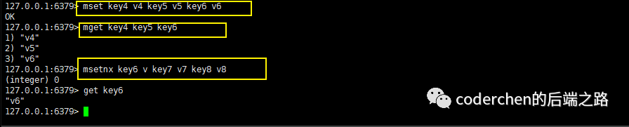 :设置多个key和value,如果这其中已经存在key,则会覆盖掉。mget key1 key2 ...keyn