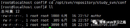 cp authz authz.bakcp passwd passwd.bakcp svnserve.conf svnserve.conf.bak