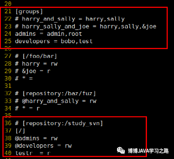 # [repository:/study_svn][/]@admins = rw@developers = rwtestr = r