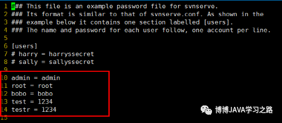 [users]admin = adminroot = rootbobo = bobotest = 1234testr = 1234