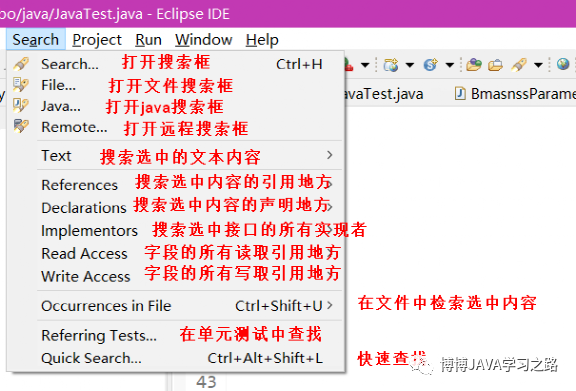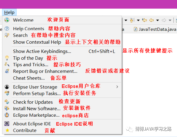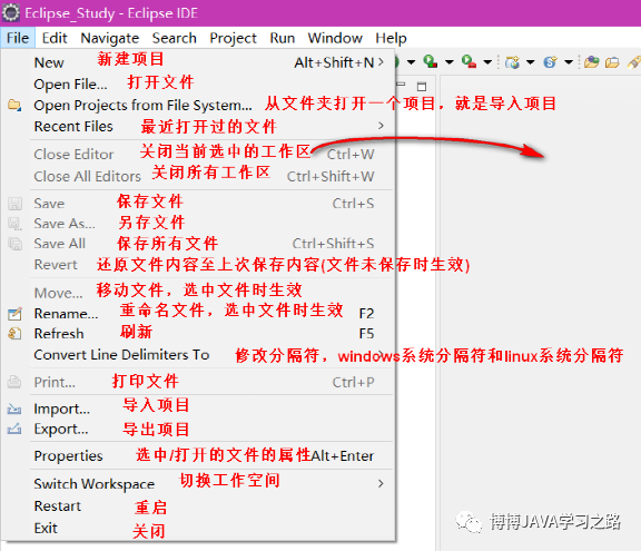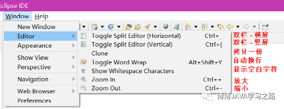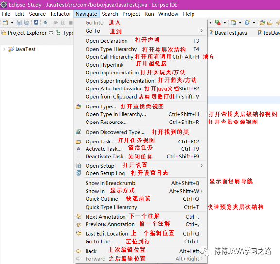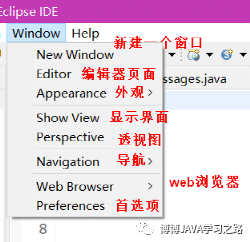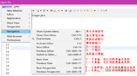 这个子菜单包含了在工作台窗口中的视图、透视图和编辑器之间导航的快捷键。