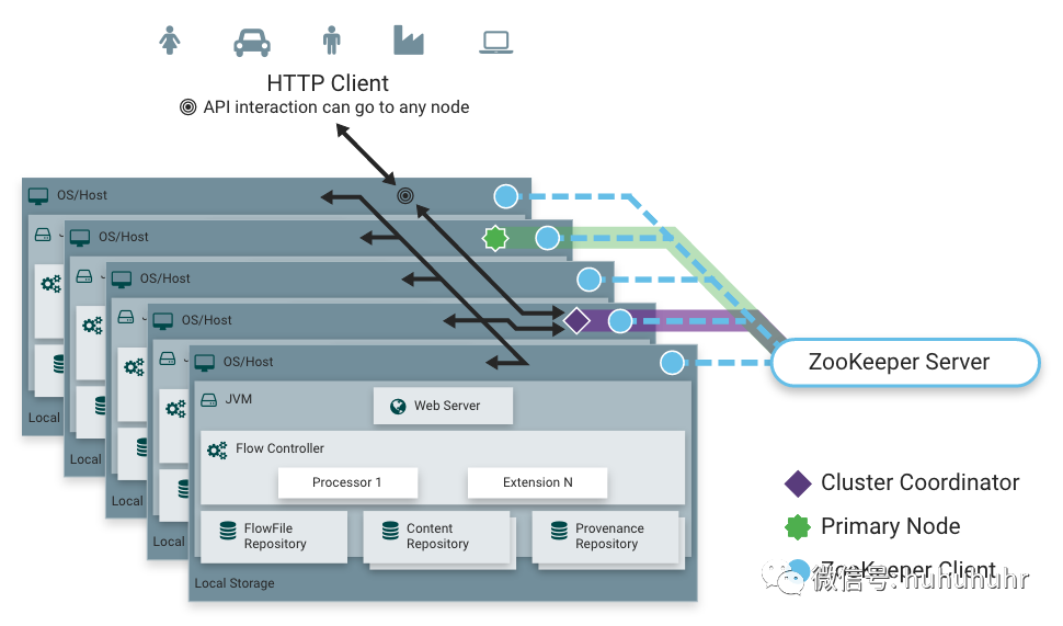 NiFi Clustering是独一无二的,有自己的术语。在设置集群之前了解以下术语非常重要:
