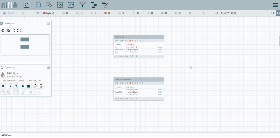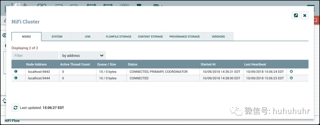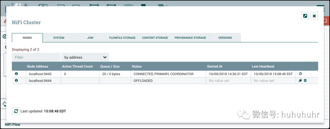 由于遇到错误(内存不足,没有网络连接等)而保持"卸载"状态的节点可以通过重新启动节点上的NiFi重新连接到集群。卸载的节点可以重新连接到集群(通过选择连接或重新启动节点上的NiFi)或从集群中删除。