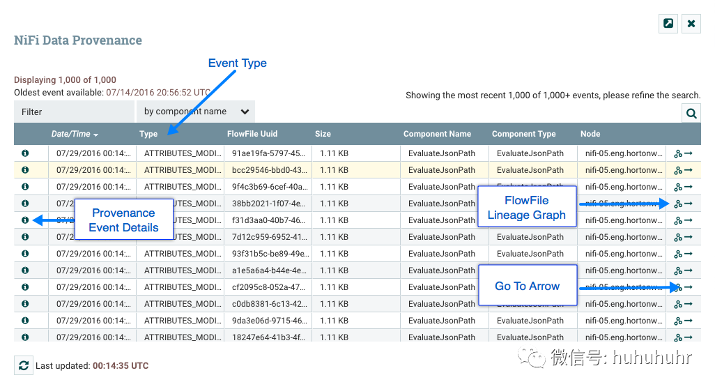 在监视数据流时,用户通常需要一种方法来确定特定数据对象(FlowFile)的发生情况。NiFi的Data Provenance页面提供了该信息。由于NiFi在对象流经系统时记录和索引数据来源详细信息,因此用户可以执行搜索,进行故障排除并实时评估数据流合规性和优化等内容。默认情况下,NiFi每五分钟更新一次此信息,但这是可配置的。