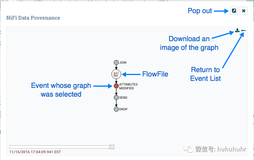 在Data Provenance页面的最左侧列中View Details,每个事件都有一个图标(
